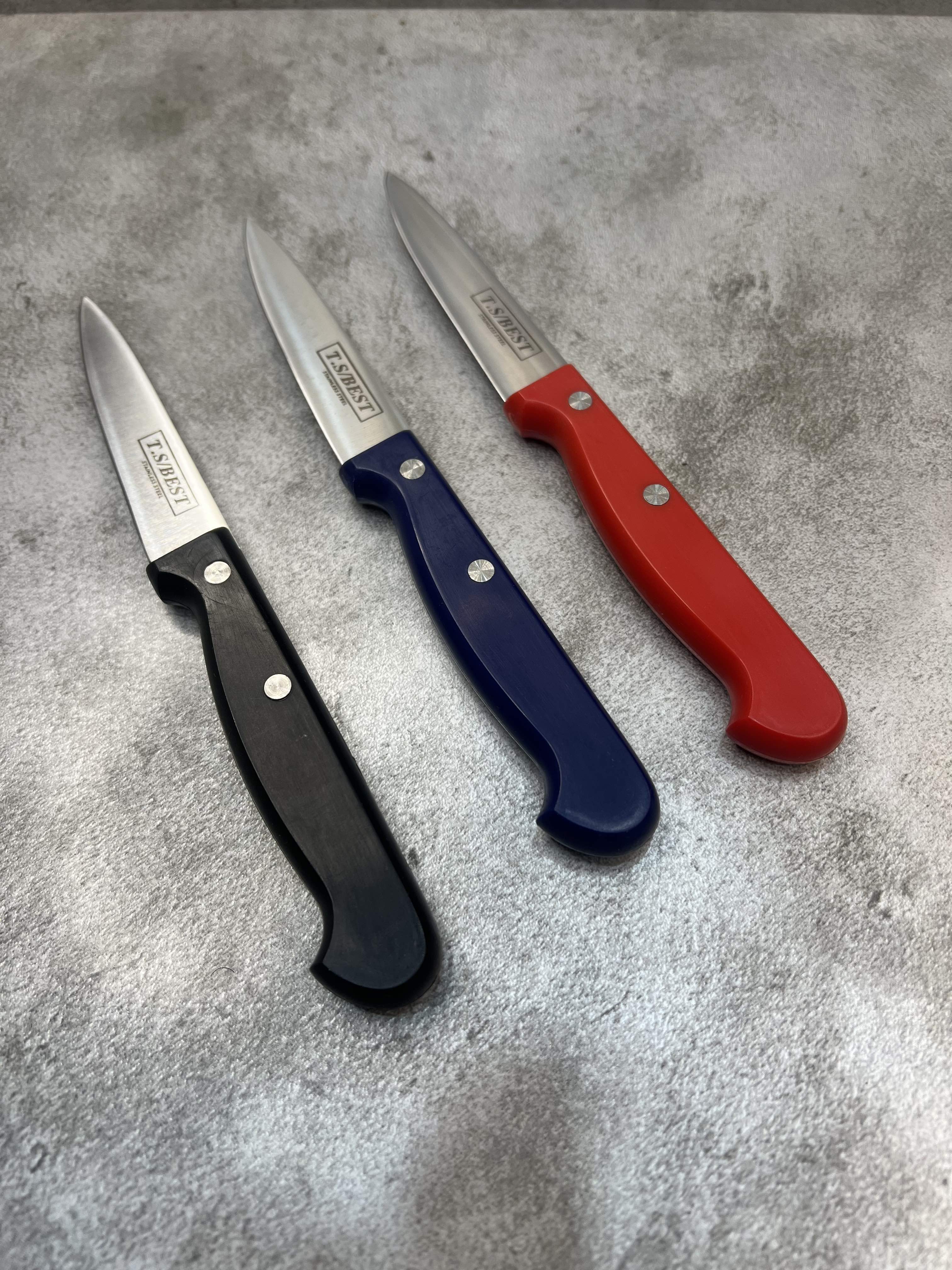 کارد آشپزخانه تیغه فولادی تی اس شماره ۴ - رنگ دسته قرمز